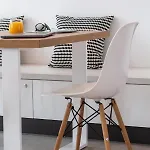 Há também microondas, chaleira elétrica e um refrigerador disponível na cozinha.